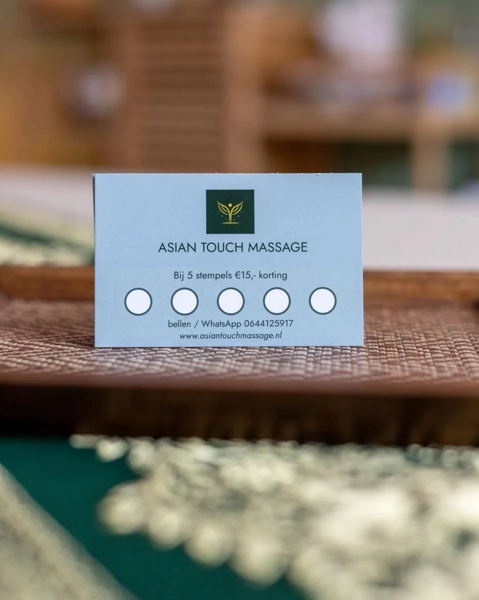 Komt u vaak voor een massage? Met onze stempelkaart krijgt u na 5 stempels €15,- korting op uw volgende behandeling. Zo wordt ontspannen extra fijn!